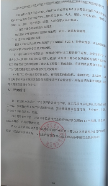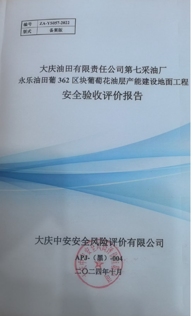 大慶油田有限責(zé)任公司第七采油廠永樂(lè)油田葡362區(qū)塊葡萄花油層產(chǎn)能建設(shè)地面工程安全驗(yàn)收評(píng)價(jià) |