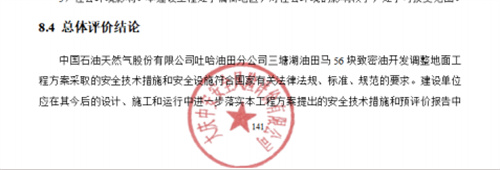 中國石油天然氣股份有限公司吐哈油田分公司三塘湖油田馬56塊致密油開發(fā)調整地面工程方案采取的安全技術措施和安全設施符合國家有關法律法規(guī)、標準、規(guī)范的要求。建設單位應在其今后的設計、施工和運行中進一步落實本工程方案提出的安全技術措施和預評價報告中提出的補充安全措施,確實保證工程安全設施和主體工程的“三同時”,并在工程竣工投產后切實加強安全生產管理,以實現(xiàn)工程安全、平穩(wěn)運行,本項目危險有害因素能夠得到控制,建成投產后,符合有關法律、法規(guī)及標準規(guī)定的安全要求。 |