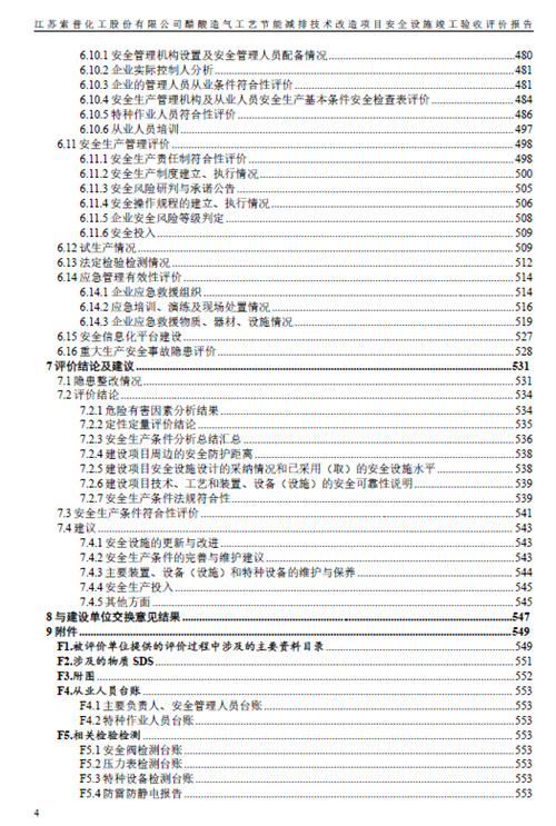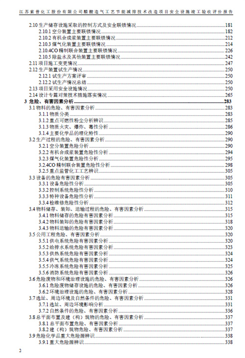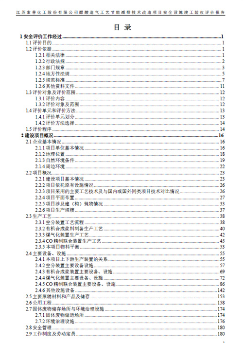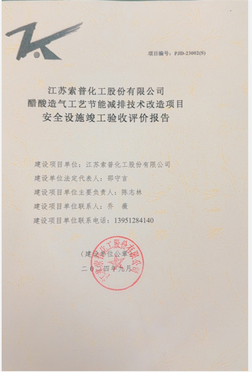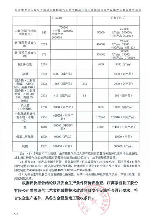江蘇索普化工股份有限公司醋酸造氣工藝節能減排技術改造項目安全設施竣工驗收評價報告 |