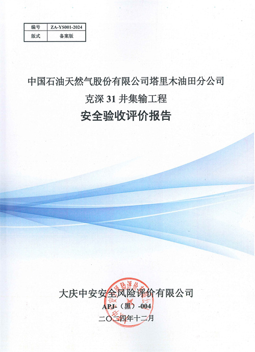 中國石油天然氣股份有限公司塔里木油田分公司克深31井集輸工程安全驗收評價報告