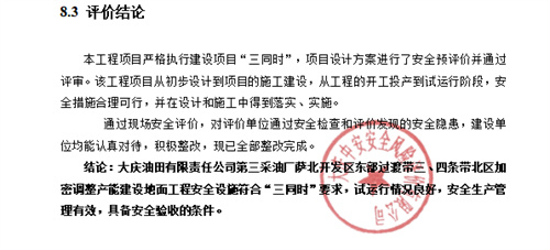 大慶油田有限責任公司第三采油廠薩北開發區東部過渡帶三、四條帶北區加密調整產能建設地面工程安全驗收評價報告 |