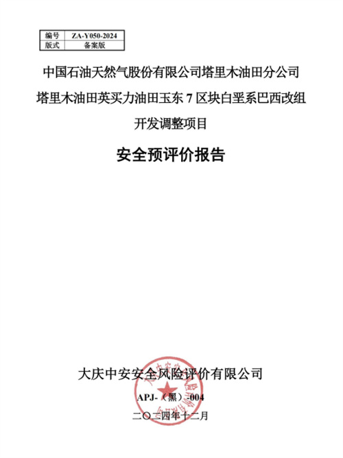 中國石油天然氣股份有限公司塔里木油田分公司塔里木油田英買力油田玉東7區(qū)塊白堊系巴西改組開發(fā)調(diào)整項(xiàng)目安全預(yù)評價報告