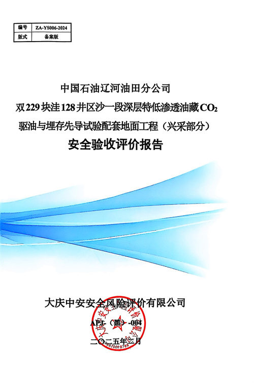 中國石油遼河油田分公司雙229塊洼128井區沙一段深層特低滲透油藏CO2驅油與埋存先導試驗配套地面工程(興采部分)安全驗收評價報告