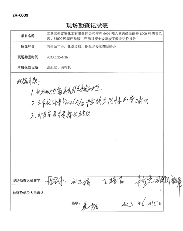 常熟三愛富氟化工有限責任公司年產6000噸六氟丙烯及配套8000噸四氟乙烯、52000噸副產鹽酸生產項目安全設施竣工驗收評價報告 |