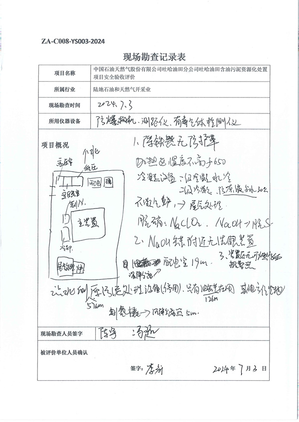 本工程內(nèi)容為新建含油污泥處理站1座以及相關(guān)配套配套設(shè)施,本項目沒有采用國家明令淘汰、禁止使用和危及安全生產(chǎn)的設(shè)備和工藝,項目嚴格執(zhí)行建設(shè)項目“三同時”,對項目進行了安全預(yù)評價并通過評審。本工程項目從初步設(shè)計到項目的施工建設(shè),從裝置的開工投產(chǎn)到試運行,安全措施合理可行,齊全有效,并在設(shè)計和施工中得到落實、實施。 綜上所述,評價單位認為:中國石油天然氣股份有限公司吐哈油田分公司吐哈油田含油污泥資源化處置項目設(shè)計、施工、試運行管理和監(jiān)督制度齊全,安全設(shè)施與主體工程同時設(shè)計、同時施工、同時投入生產(chǎn)和使用,經(jīng)過符合性檢查,符合法律、法規(guī)和標(biāo)準規(guī)范的要求。評價組對現(xiàn)場進行勘察,共發(fā)現(xiàn)2處安全隱患,鄯善采油管理區(qū)已對隱患進行整改,該工程試運行情況良好,安全生產(chǎn)管理有效,該工程具備安全驗收的條件。 |