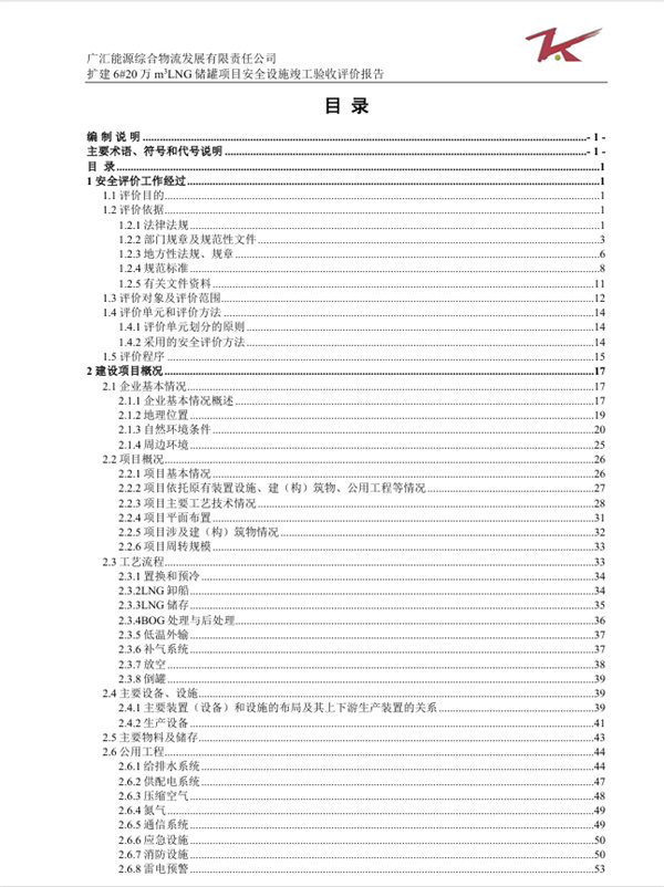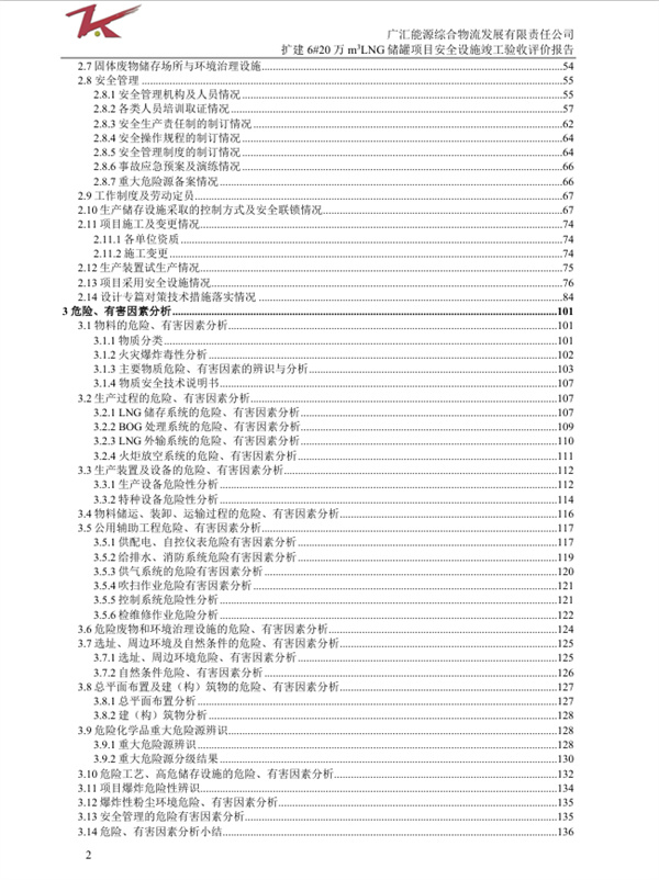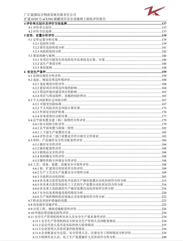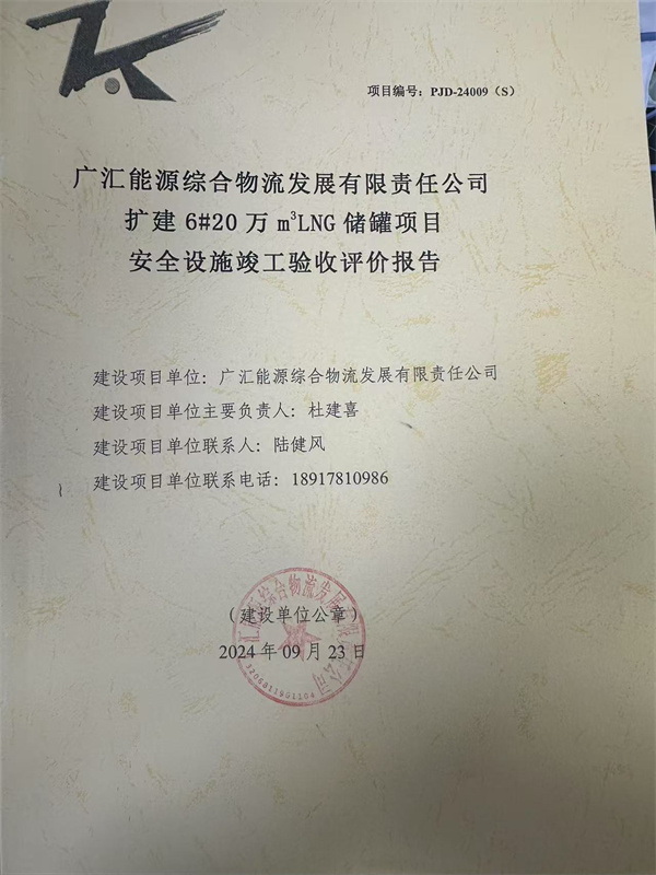 廣匯能源綜合物流發展有限責任公司擴建6#20萬m3LNG儲罐項目安全設施竣工驗收評價報告 |