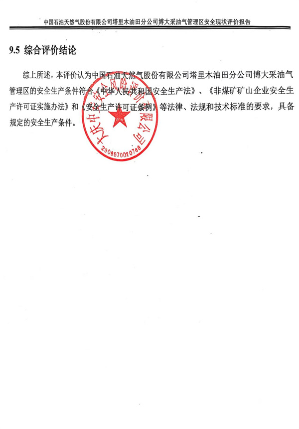 中國石油天然氣股份有限公司塔里木油田分公司博大采油氣管理區(qū)安全現(xiàn)狀評價報告