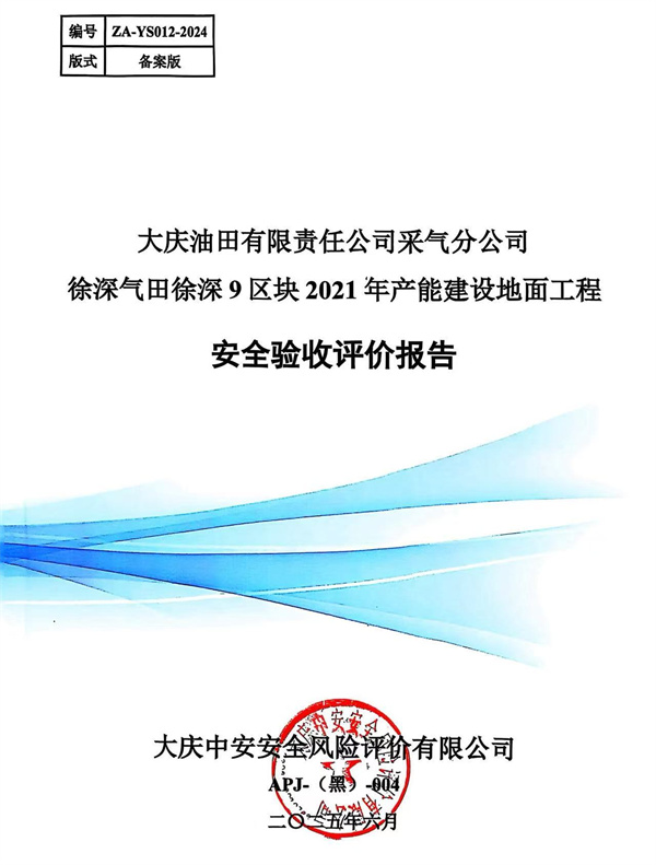 大慶油田有限責任公司采氣分公司徐深氣田徐深9區塊2021年產能建設地面工程安全驗收評價 |