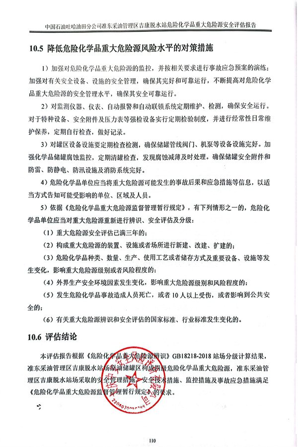 中國石油天然氣股份有限公司吐哈油田分公司準(zhǔn)東采油管理區(qū)吉康脫水站危險化學(xué)品重大危險源安全評估報告
