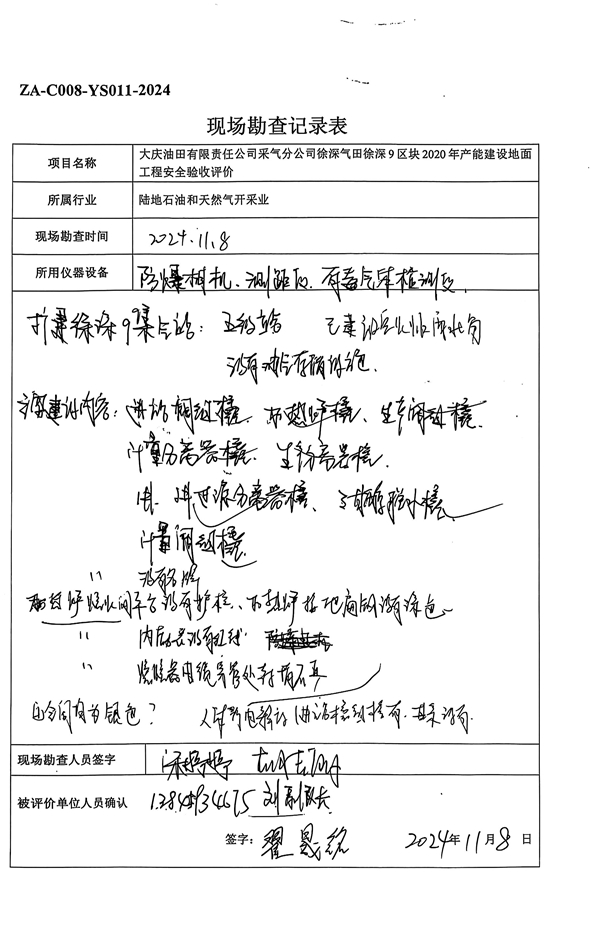 對新建井場及擴建站場周邊環(huán)境、平面布置情況、現(xiàn)場安全設備設施進行檢查。 |