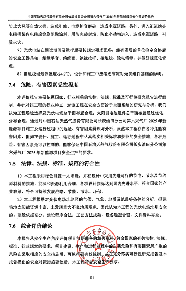 中國石油天然氣股份有限公司長慶油田分公司第六采氣廠2025年新能源項目安全預(yù)評價報告 |