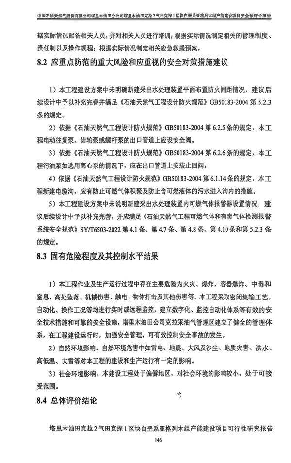 中國石油天然氣股份有限公司塔里木油田分公司塔里木油田克拉2氣田克探1區塊白堊系亞格列木組產能建設項目安全預評價