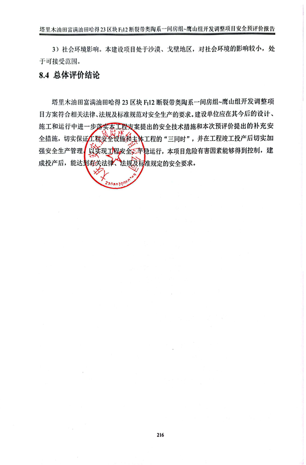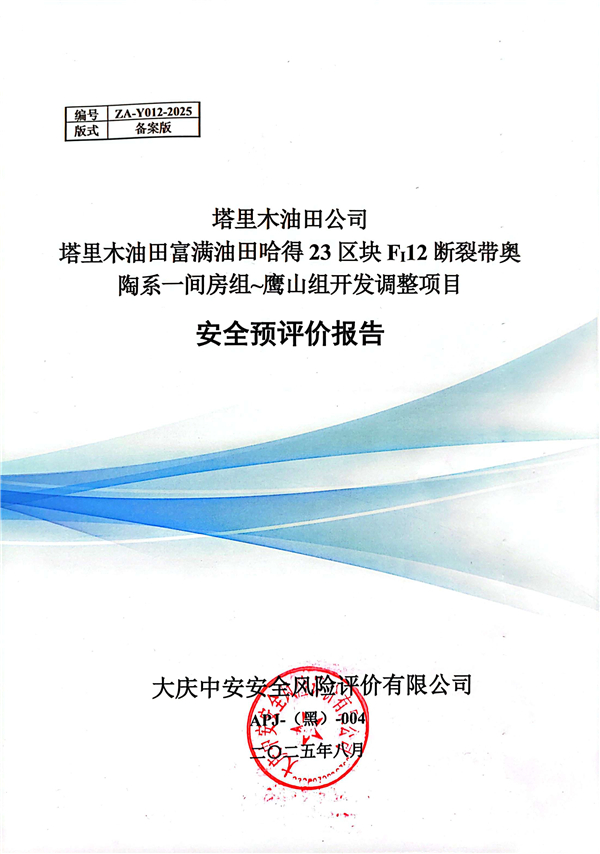 塔里木油田公司塔里木油田富滿油田哈得23區(qū)塊FI12斷裂帶奧陶系一間房組~鷹山組開發(fā)調(diào)整項(xiàng)目安全預(yù)評(píng)價(jià)報(bào)告
