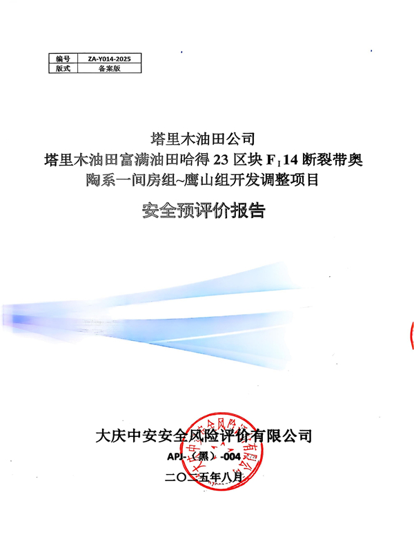 塔里木油田公司塔里木油田富滿油田哈得23區(qū)塊FI14斷裂帶奧陶系一間房組~鷹山組開發(fā)調整項目安全預評價報告