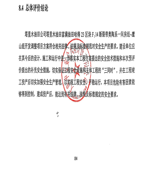 塔里木油田公司塔里木油田富滿油田哈得23區(qū)塊FⅠ14斷裂帶奧陶系一間房組~鷹山組開發(fā)調整項目方案符合相關法律、法規(guī)及標準規(guī)范對安全生產的要求。建設單位應在其今后的設計、施工和運行中進一步落實本工程方案提出的安全技術措施和本次預評價提出的補充安全措施,切實保證工程安全設施和主體工程的“三同時”,并在工程竣工投產后切實加強安全生產管理,以實現(xiàn)工程安全、平穩(wěn)運行,本項目危險有害因素能夠得到控制,建成投產后,能達到有關法律、法規(guī)及標準規(guī)定的安全要求。 |