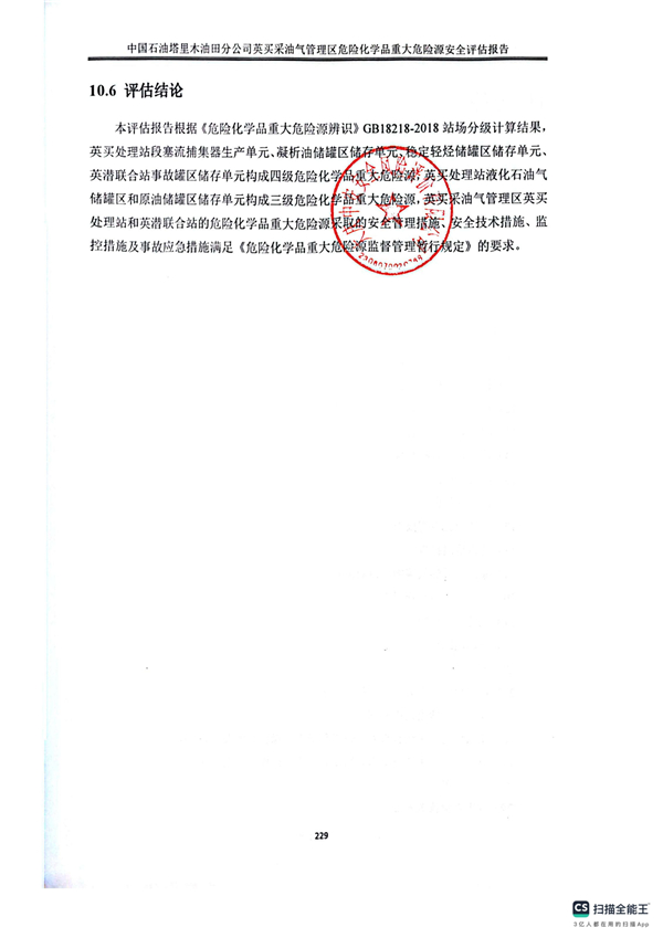 中國石油天然氣股份有限公司塔里木油田分公司英買采油氣管理區(qū) 危險(xiǎn)化學(xué)品重大危險(xiǎn)源安全評估報(bào)告