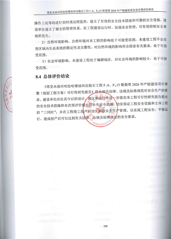 中國石油天然氣股份有限公司塔里木油田分公司塔里木油田哈拉哈塘油田壓艙石工程FⅠ6、FⅡ15斷裂帶2026年產能建設項目安全預評價報告 |