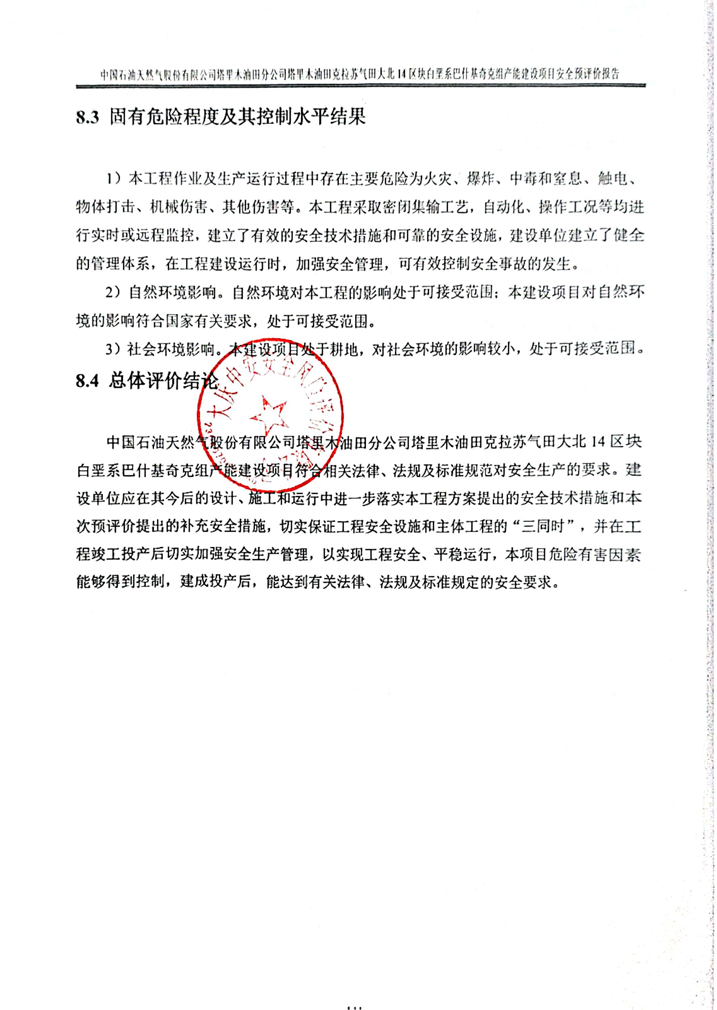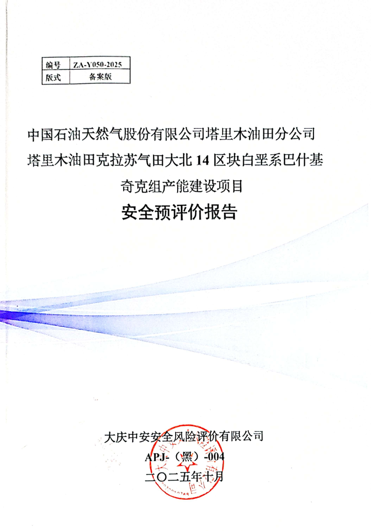 中國石油天然氣股份有限公司塔里木油田分公司塔里木油田克拉蘇氣田大北14區(qū)塊白堊系巴什基奇克產(chǎn)能建設(shè)項(xiàng)目安全預(yù)評(píng)價(jià)報(bào)告