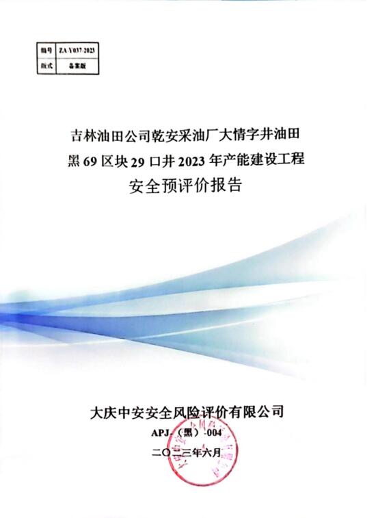 吉林油田公司乾安采油廠大情字井油田黑69區塊29口井2023年產能建設工程安全評價報告
