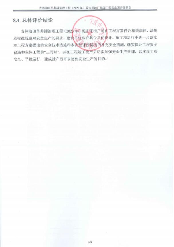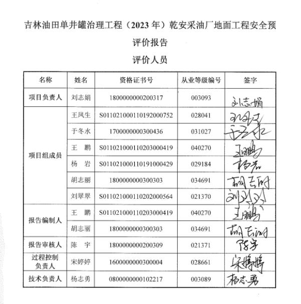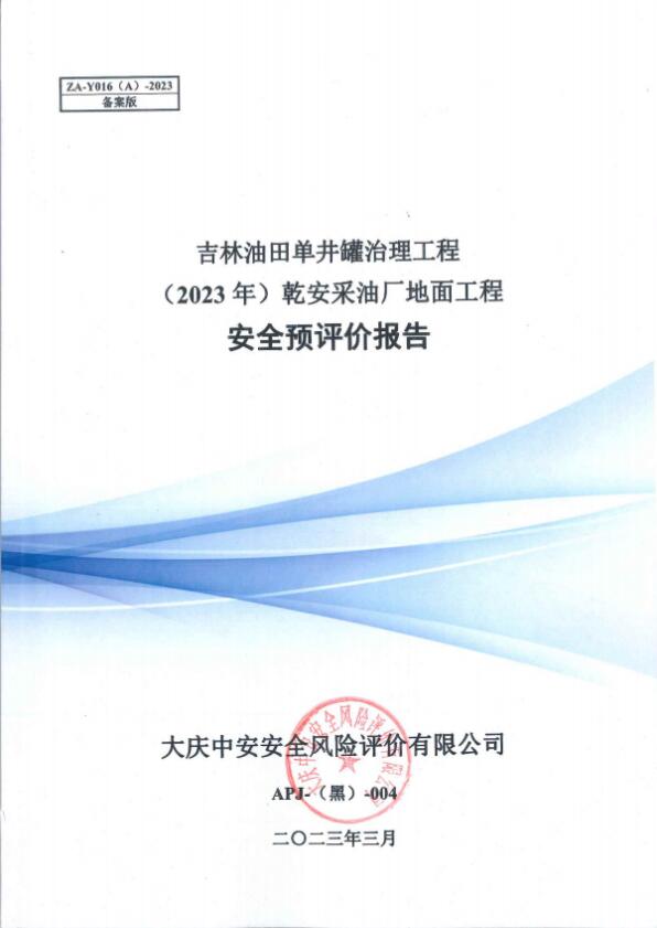 吉林油田單井罐治理工程(2023年)乾安采油廠地面工程安全評(píng)價(jià)報(bào)告