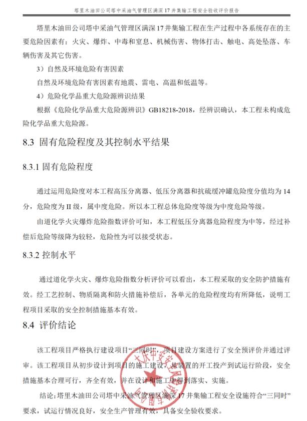 塔里木油田公司塔中采油氣管理區(qū)滿深17井集輸工程安全驗(yàn)收評價(jià)