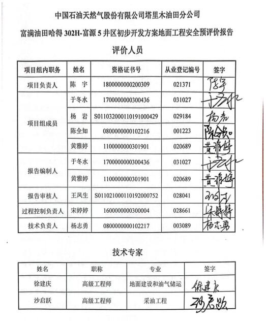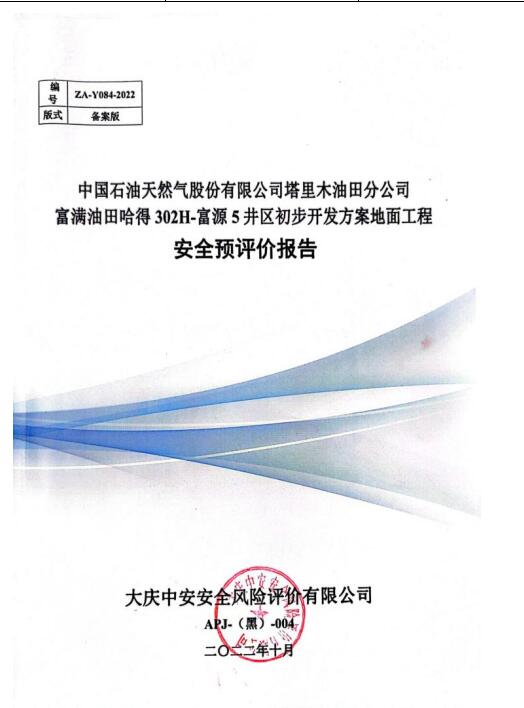 中國石油天然氣股份有限公司塔里木油田分公司富滿油田哈得302H-富源5井區(qū)初步開發(fā)方案地面工程安全評價(jià)報(bào)告