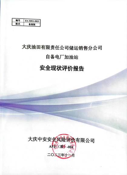 大慶油田有限責(zé)任公司儲(chǔ)運(yùn)銷售分公司自備電廠加油站安全現(xiàn)狀評價(jià)報(bào)告 |