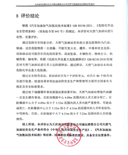大慶油田有限責任公司儲運銷售分公司天然氣加油站安全現狀評價報告