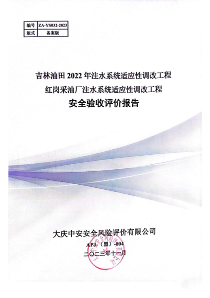 吉林油田2022年注水系統(tǒng)適應(yīng)性調(diào)改工程紅崗采油廠注水系統(tǒng)適應(yīng)性調(diào)改工程安全驗收評價報告