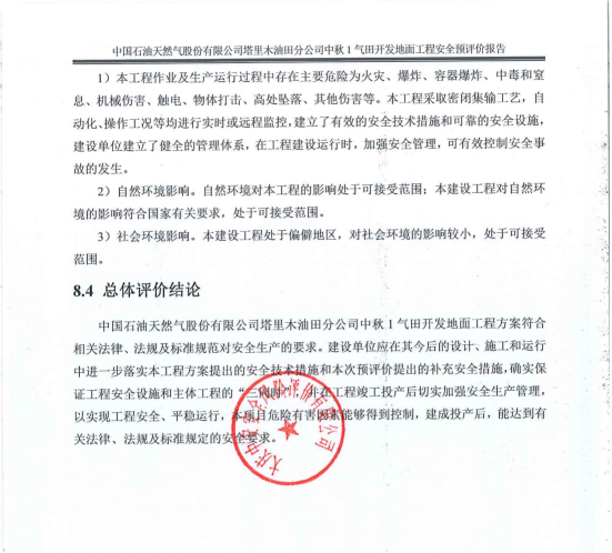 中國(guó)石油天然氣股份有限公司塔里木油田分公司中秋1氣田開發(fā)地面工程 安全預(yù)評(píng)價(jià)報(bào)告