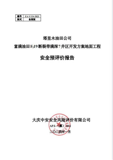 塔里木油田公司富滿油田FI19斷裂帶滿深7井區開發方案地面工程安全預評價