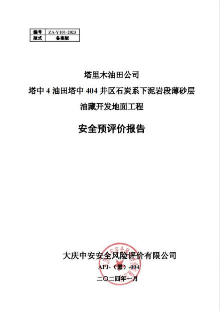 塔里木油田公司塔中4油田塔中404井區(qū)石炭系下泥巖段薄砂層油藏開發(fā)地面工程安全預(yù)評價