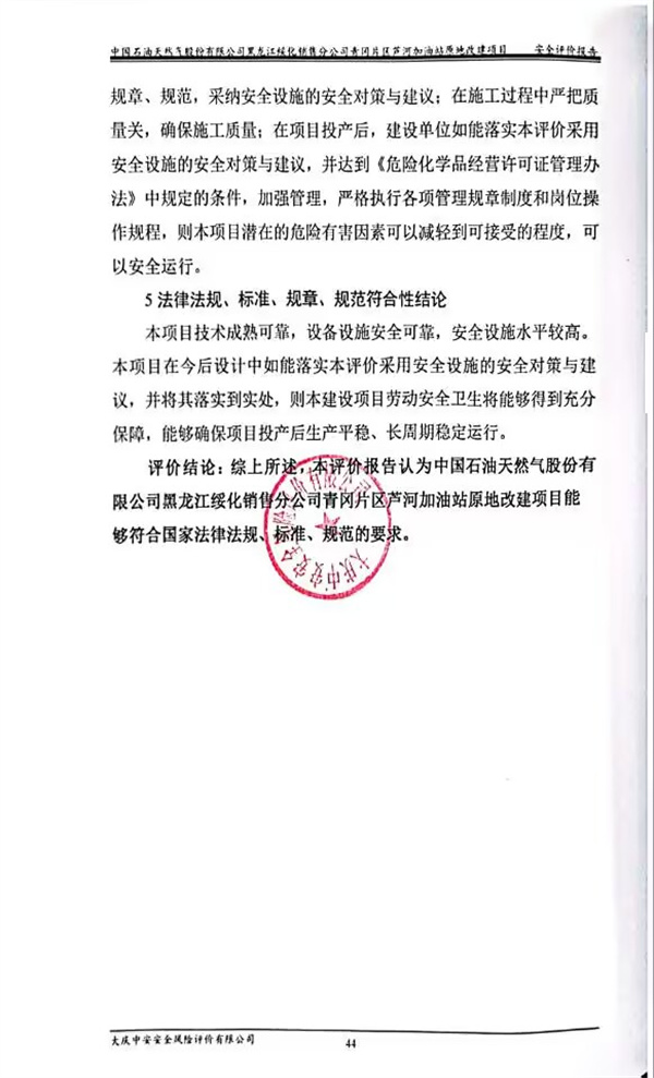 中國石油天然氣股份有限公司黑龍江綏化銷售分公司青岡片區蘆河加油站原地改建項目安全預評價 |