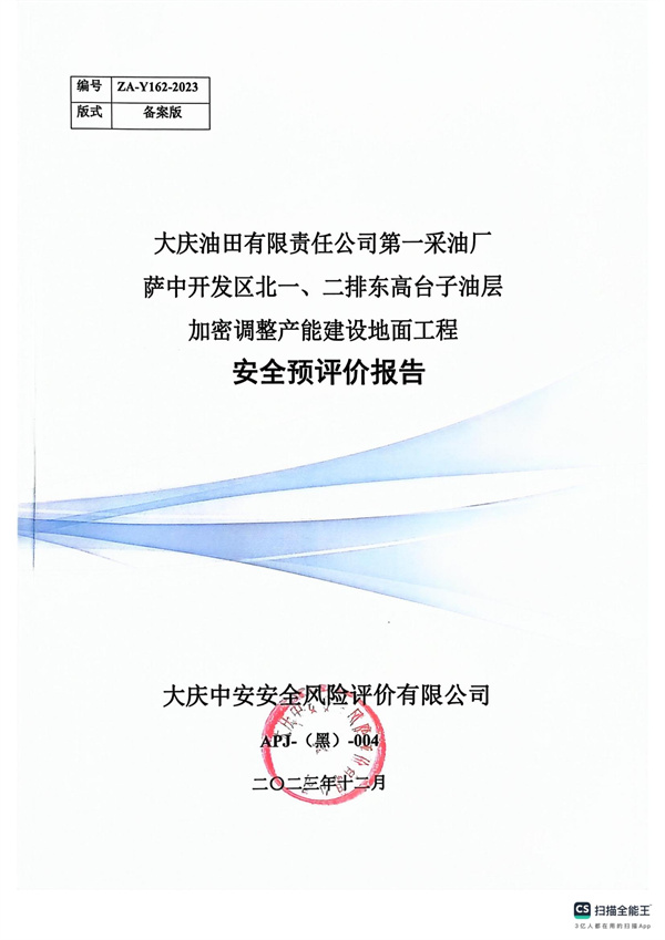 大慶油田有限責(zé)任公司第一采油廠薩中開發(fā)區(qū)北一、二排東高臺(tái)子油層加密調(diào)整產(chǎn)能建設(shè)地面工程安全預(yù)評(píng)價(jià)報(bào)告 |