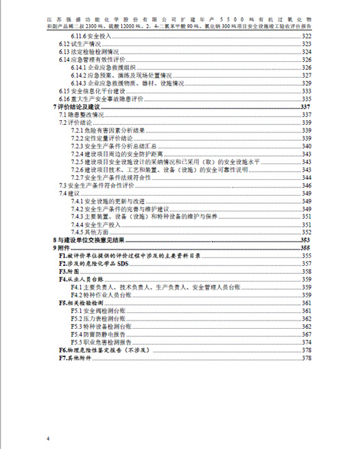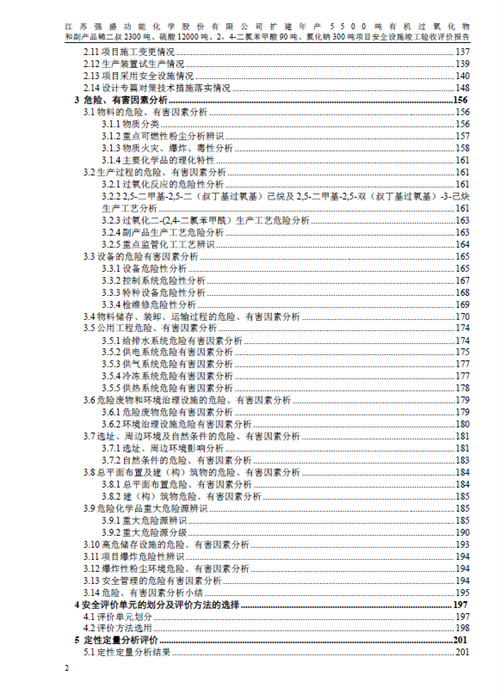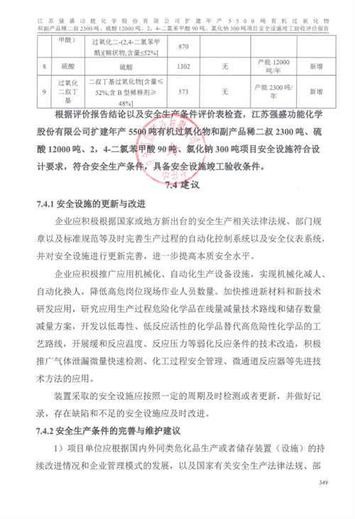 江蘇強盛功能化學(xué)股份有限公司擴建年產(chǎn)5500噸有機過氧化物 和副產(chǎn)品稀二叔2300噸、硫酸12000噸、2,4-二氯苯甲酸90噸、氯化鈉300噸項目安全設(shè)施竣工驗收評價報告 |