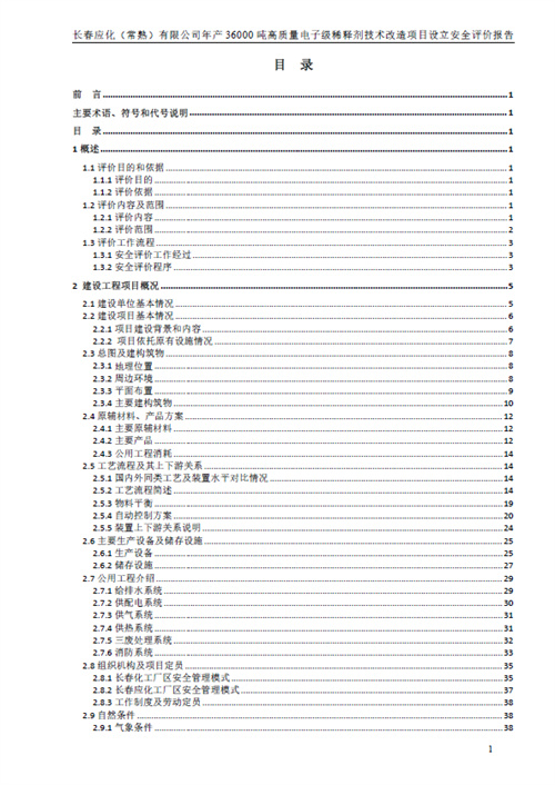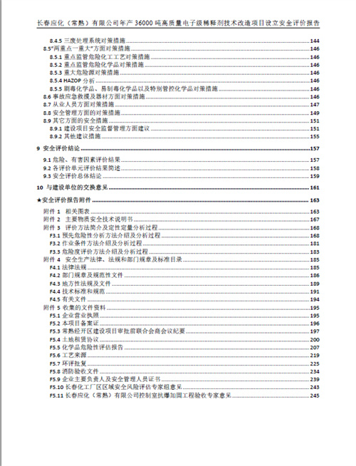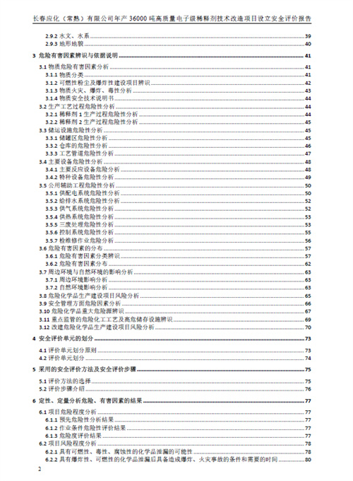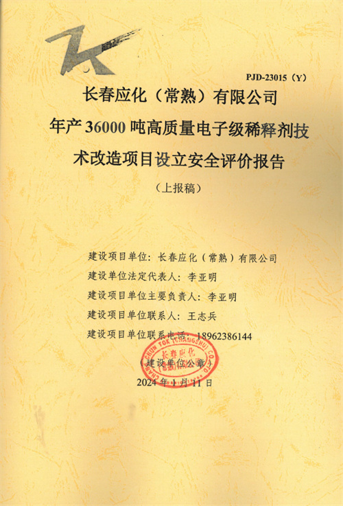 長春應化(常熟)有限公司年產36000噸高質量電子級稀釋劑技術改造項目設立安全評價報告 |