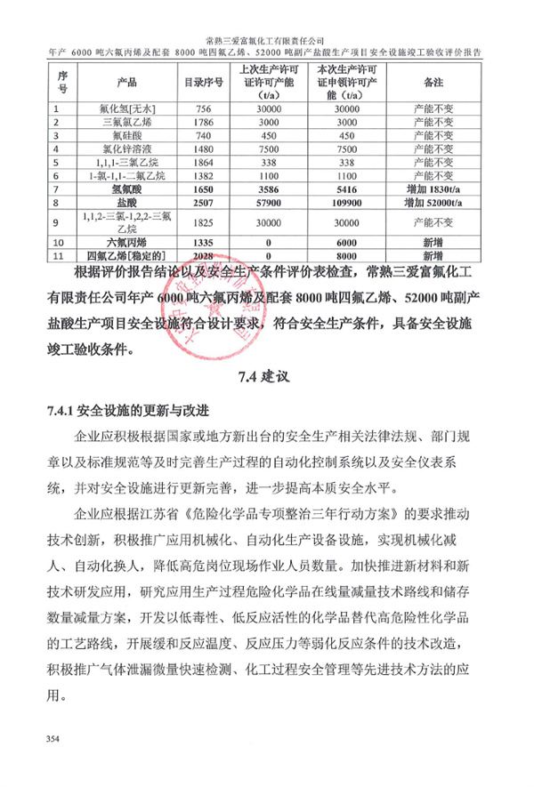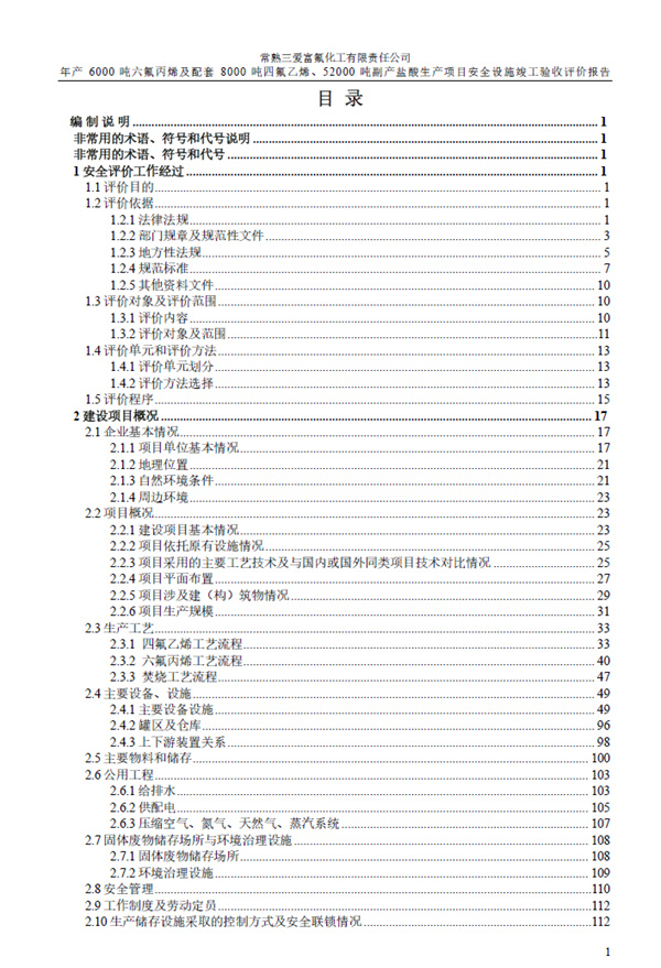 常熟三愛富氟化工有限責(zé)任公司年產(chǎn)6000噸六氟丙烯及配套8000噸四氟乙烯、52000噸副產(chǎn)鹽酸生產(chǎn)項(xiàng)目安全設(shè)施竣工驗(yàn)收評(píng)價(jià)報(bào)告 |